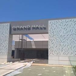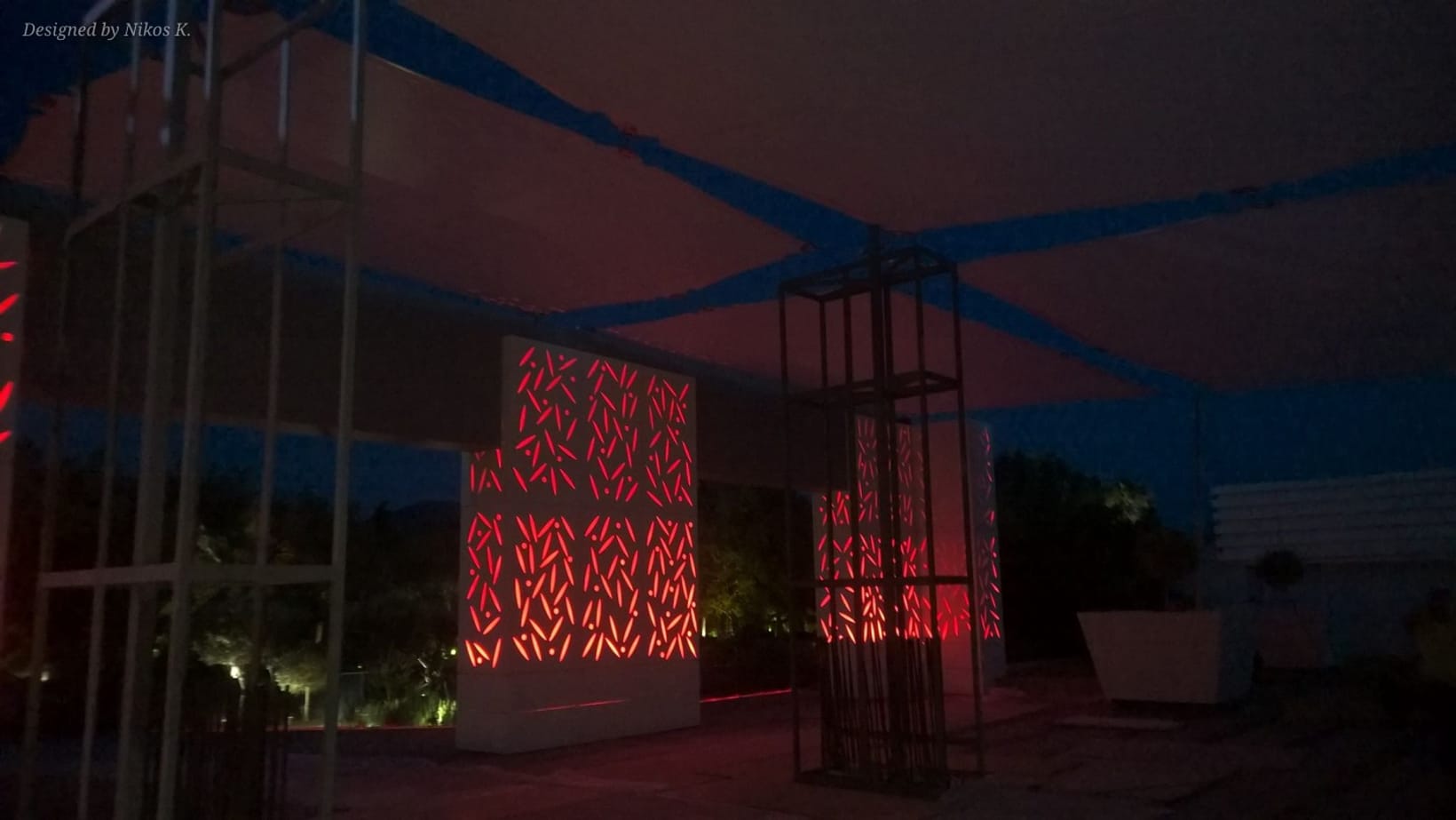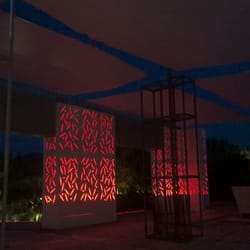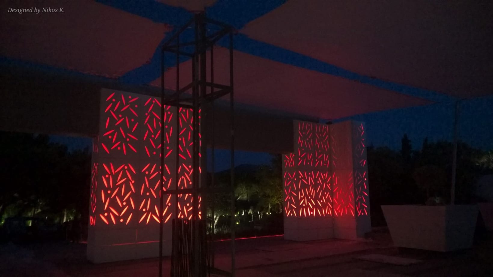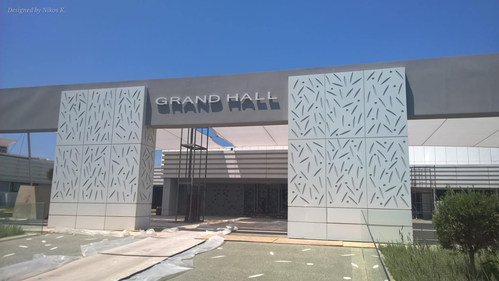 A decorative tensioned membrane at the entrance of the luxurious Grand Resort Lagonissi, located on the Athenian Riviera.