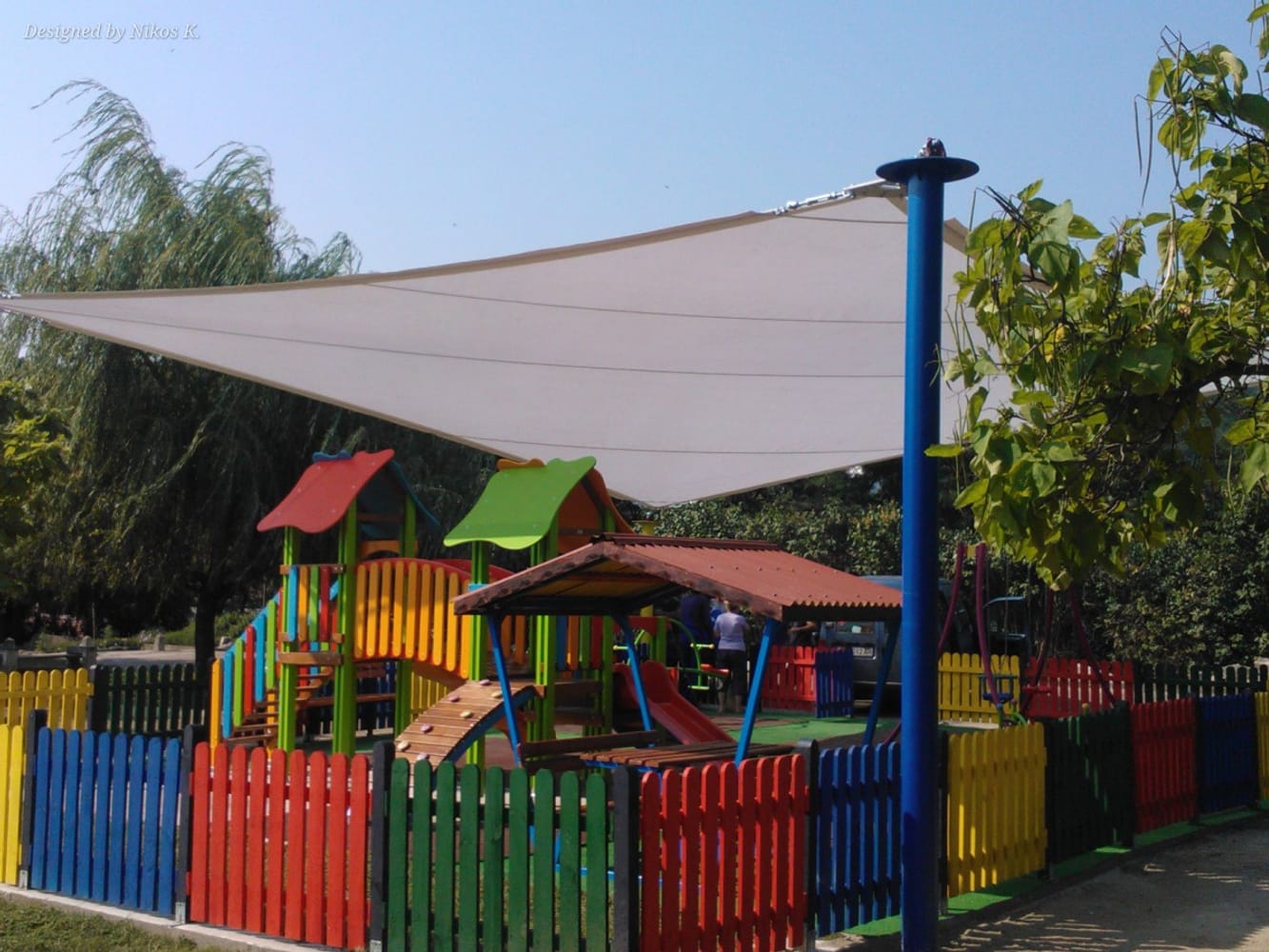 Опъната мембрана със седловидна форма, монтирана над детска площадка с размери 11×11 м в гр. Оряхово. Проектът е реализиран от Община Оряхово през юни 2013 г. с цел да осигури сянка, комфорт и безопасност за децата в горещите летни месеци.