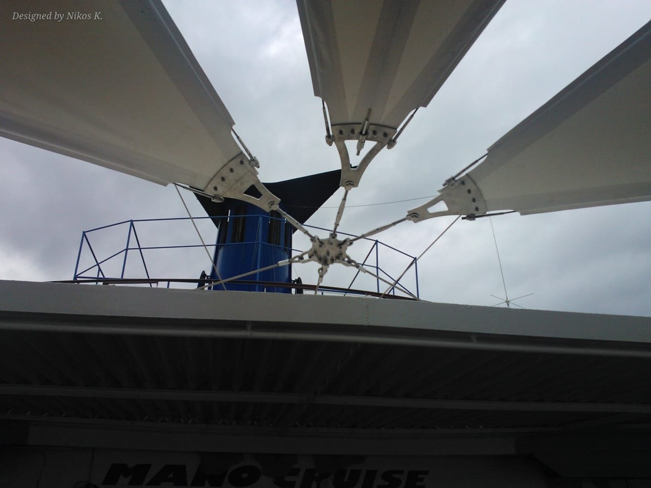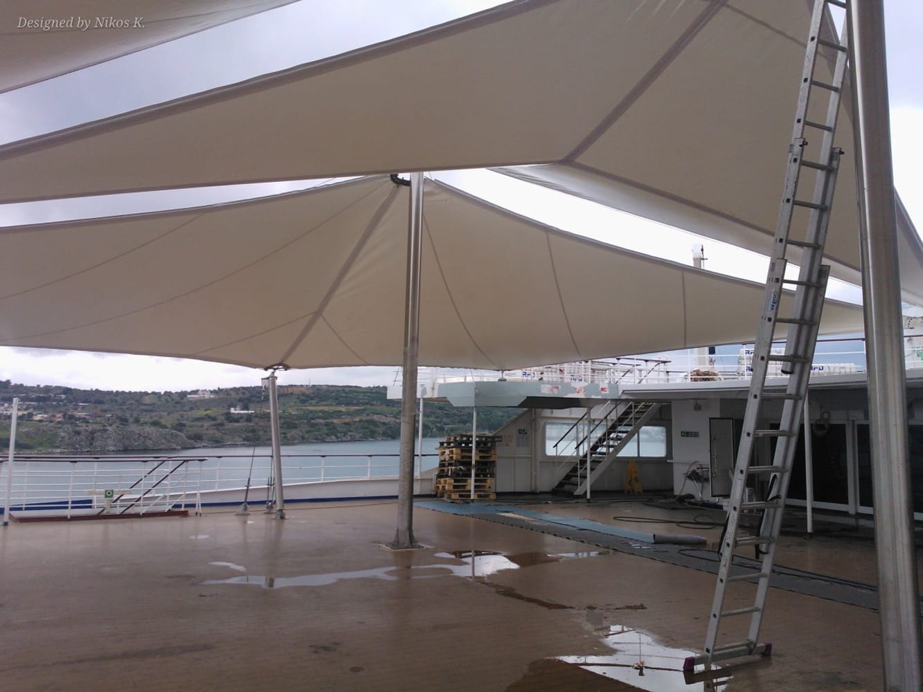 Конструкцията е хармонично интегрирана в архитектурата на палубата и е проектирана да устои на сурови морски условия – вятър, солен въздух и UV-лъчи. Формата ѝ съчетава естетика и функционалност, като допринася за елегантния силует на кораба и създава приятна зона за отдих на борда.