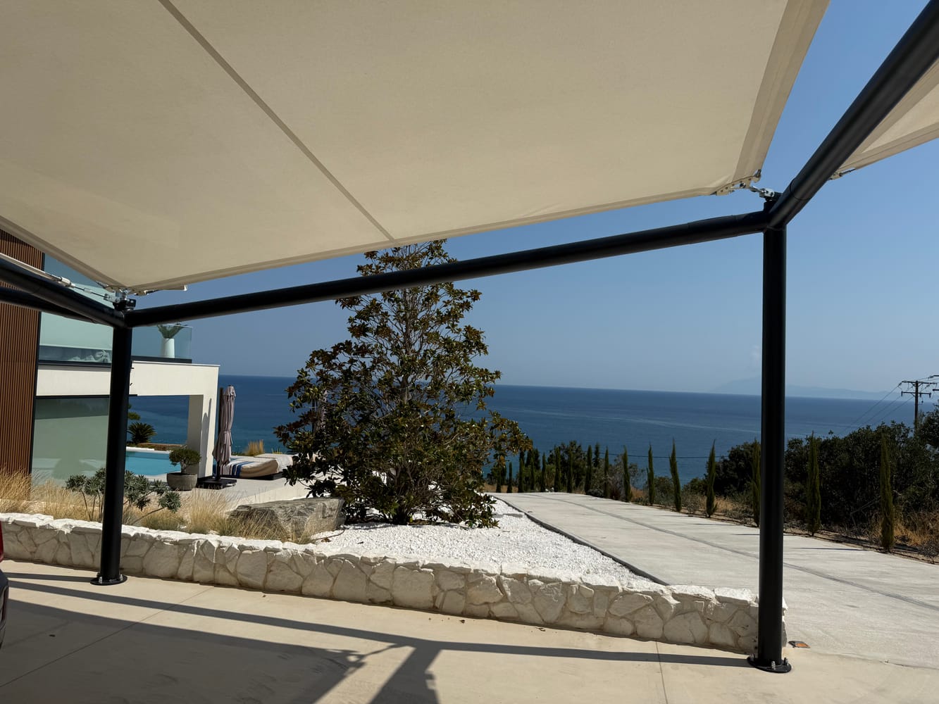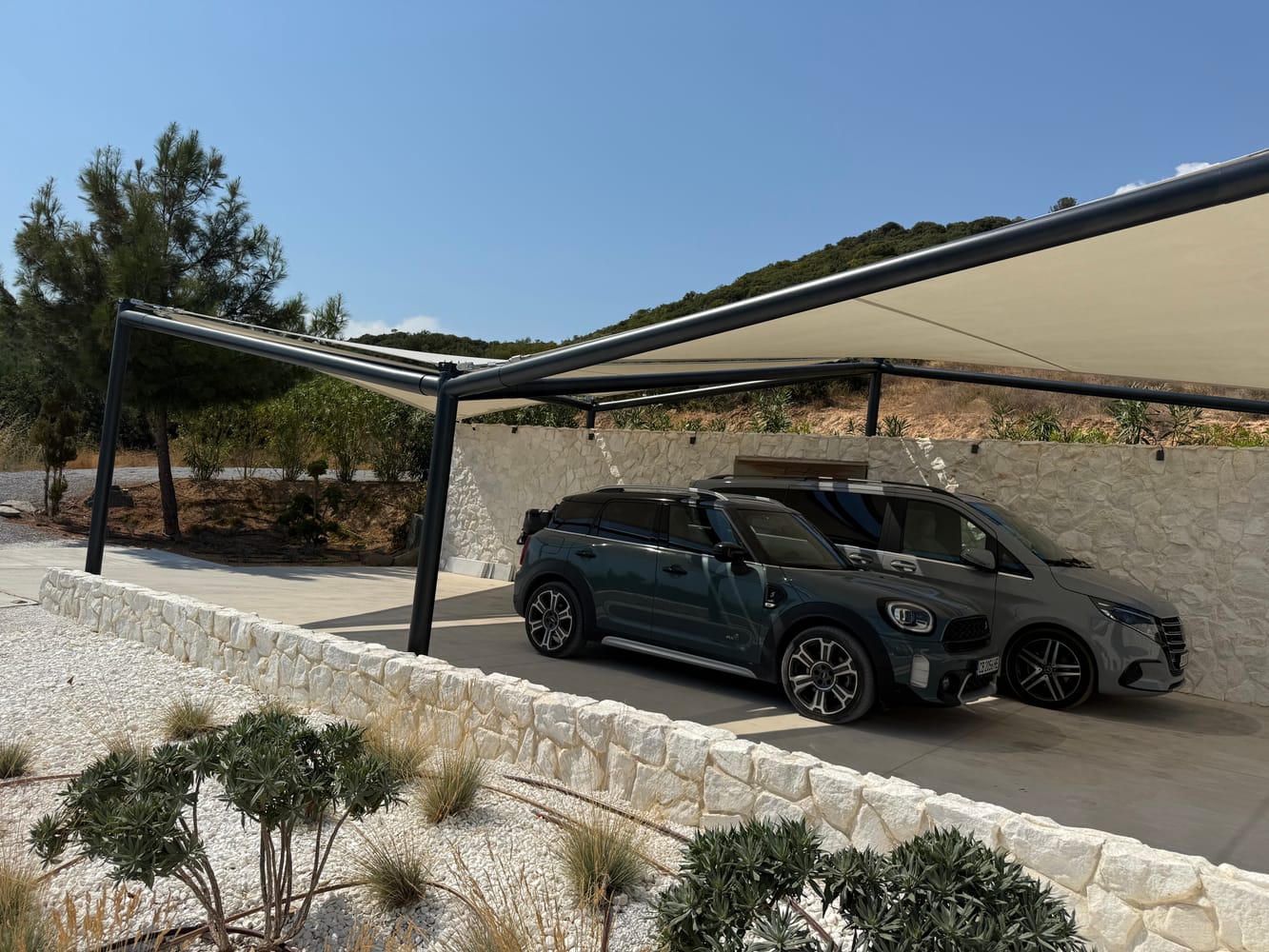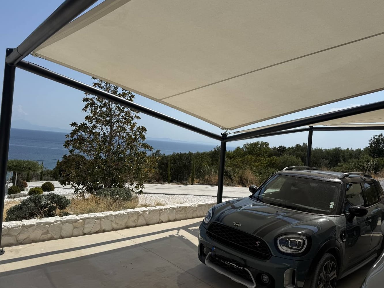 В живописните околности на Неа Перамос реализирахме проект, който съчетава изтънчен дизайн с практична функция. Изградихме елегантна сенчеста конструкция за автомобилен паркинг, която осигурява комфорт и защита, като същевременно допълва естетиката на имота с дискретен лукс.