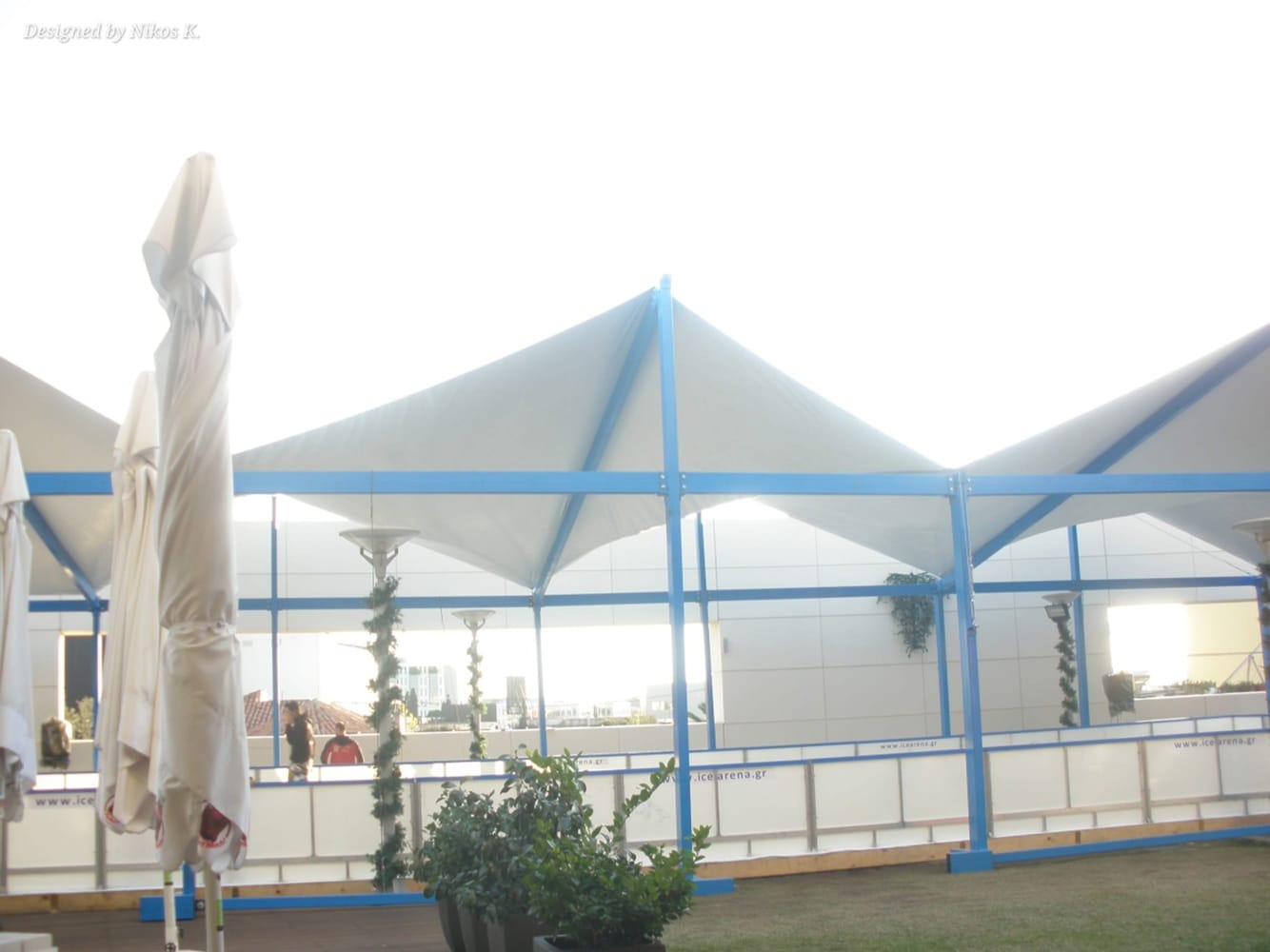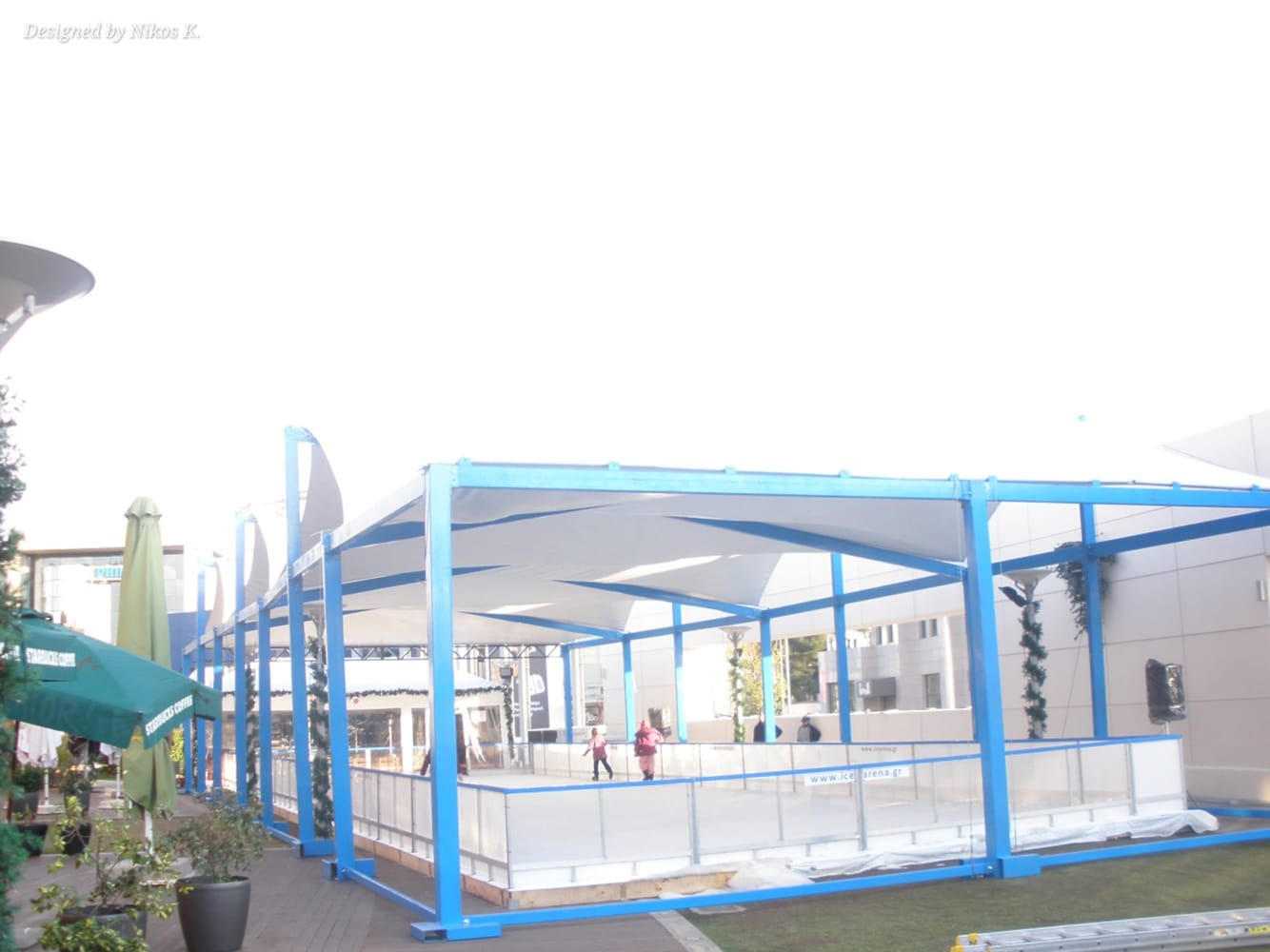 Ледена пързалка, изградена в търговски център в Атина, покрита със стоманена носеща конструкция и текстилно покритие. Покривът е с вълнообразна форма, която придава динамична архитектурна визия и улеснява отвеждането на дъждовна вода и сняг.
