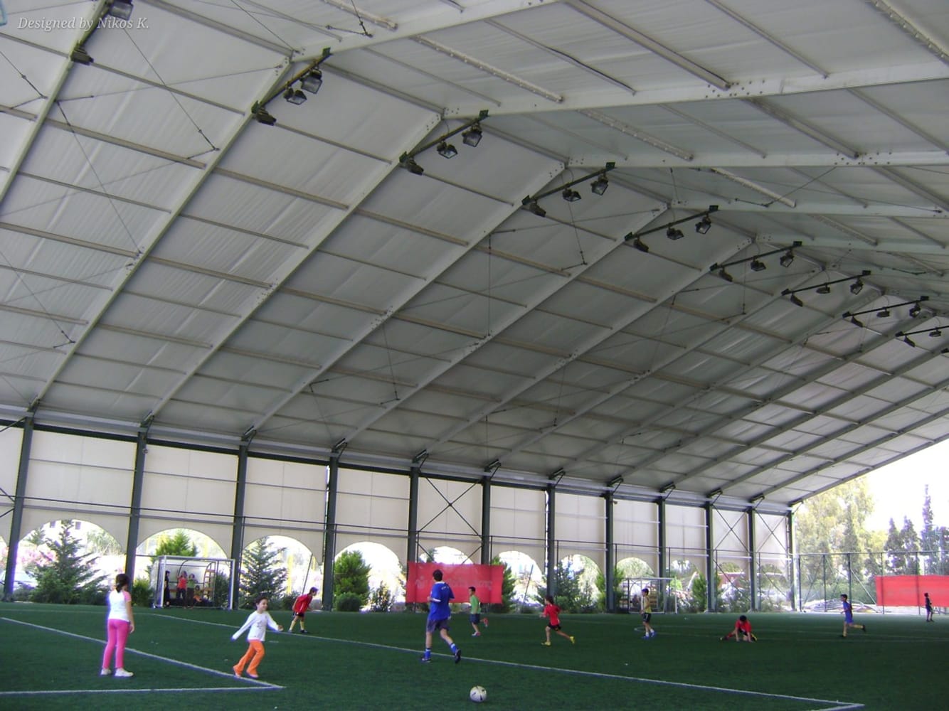 През октомври 2005 г. в град Ираклио, остров Крит, изградихме покрито футболно игрище с размери 42 × 64 м и височина на страничната конструкция 8 м. Съоръжението е покрито с метална носеща конструкция, облечена с PVC текстил, устойчив на UV лъчи и атмосферни влияния.