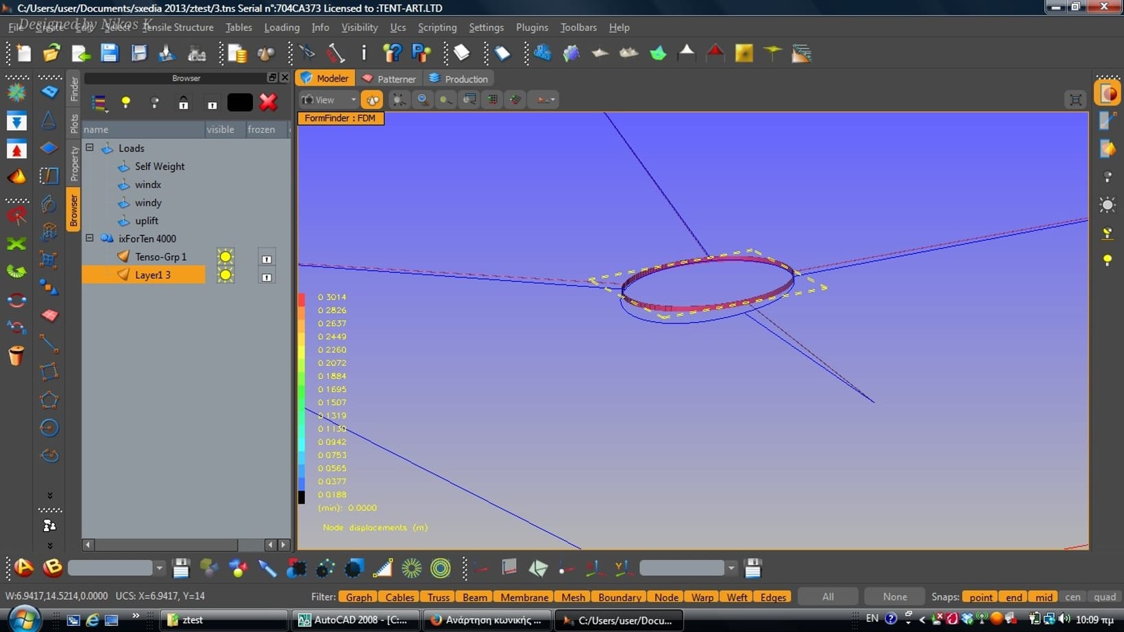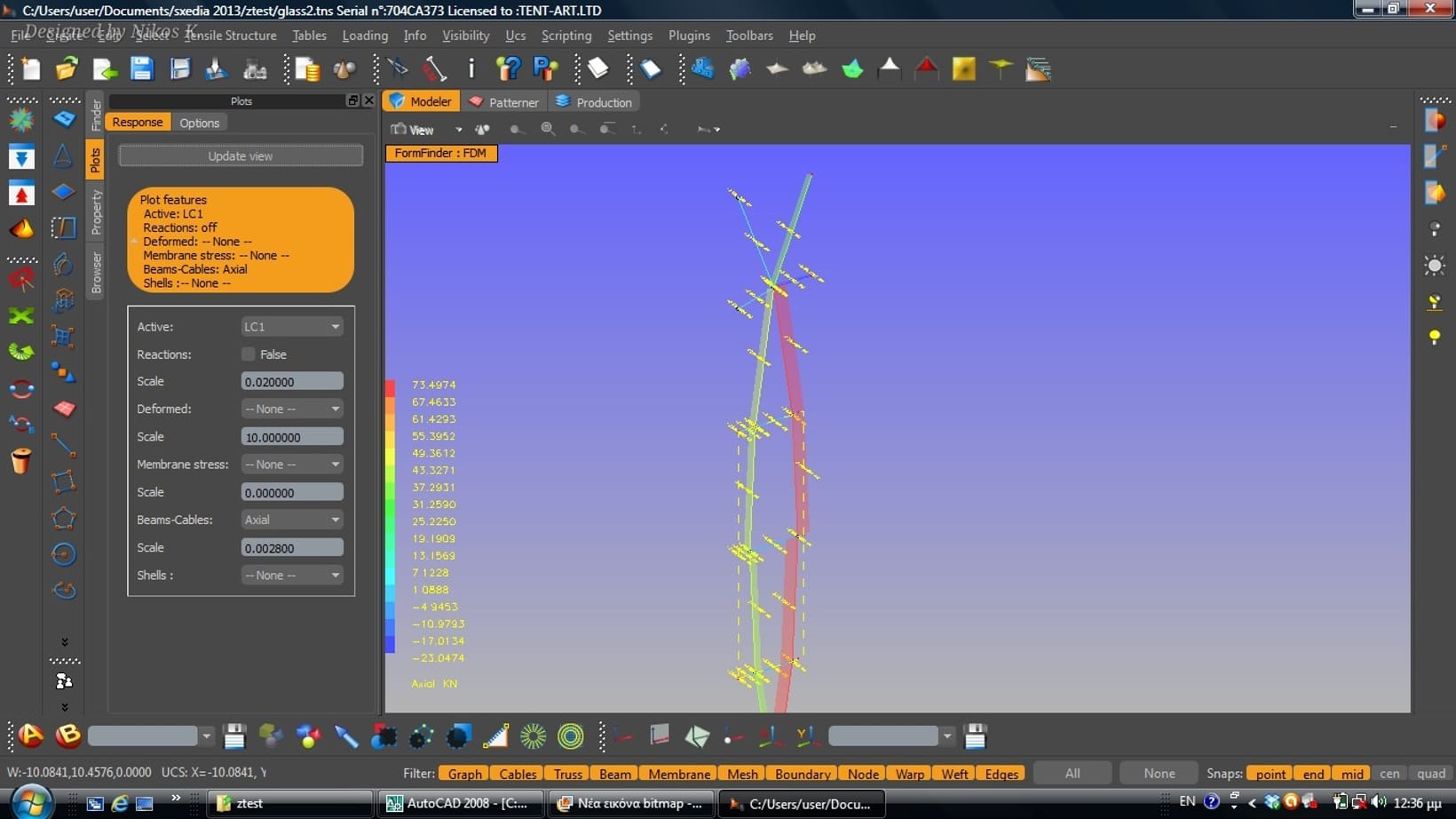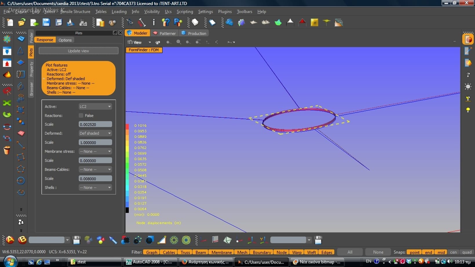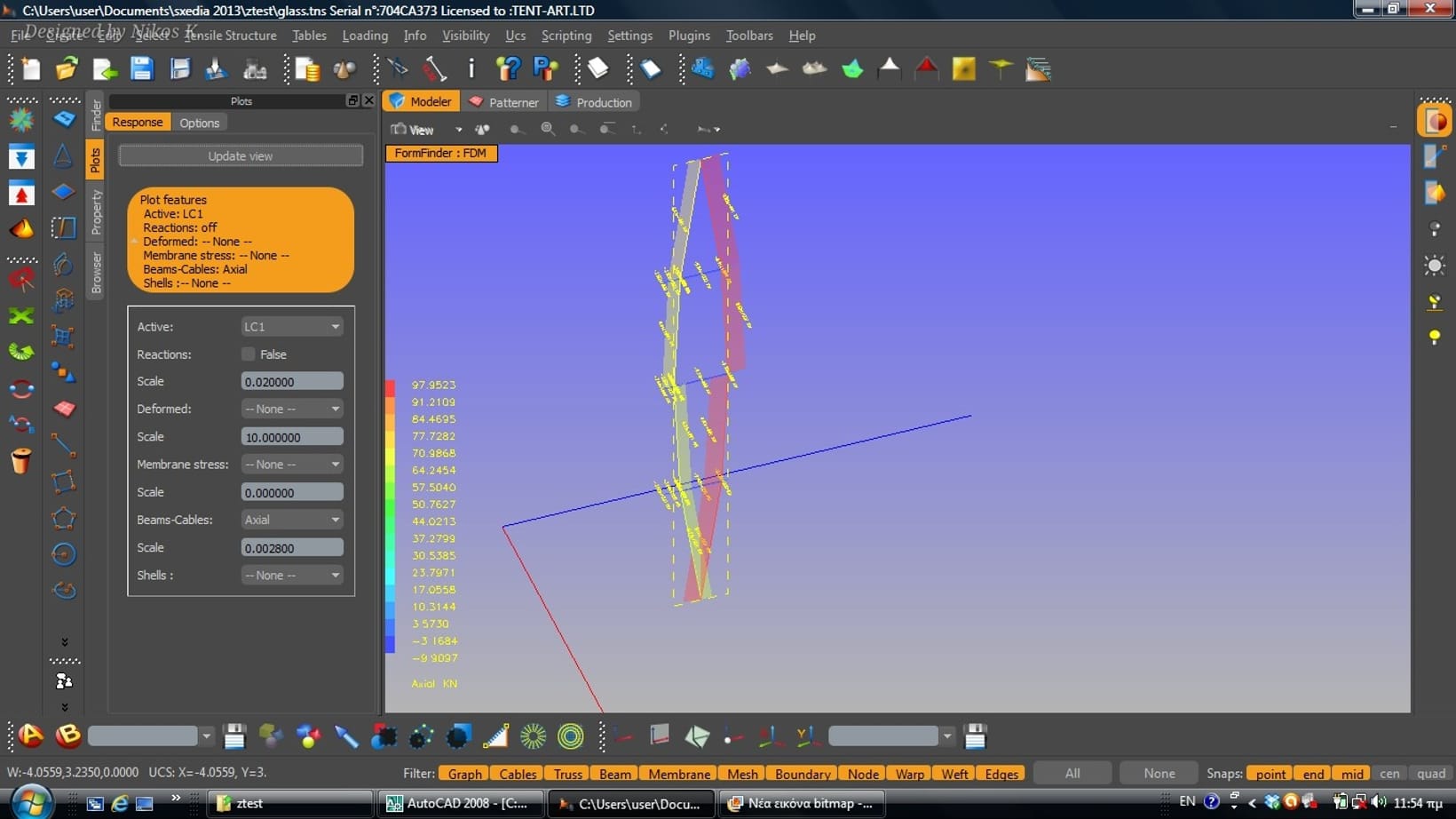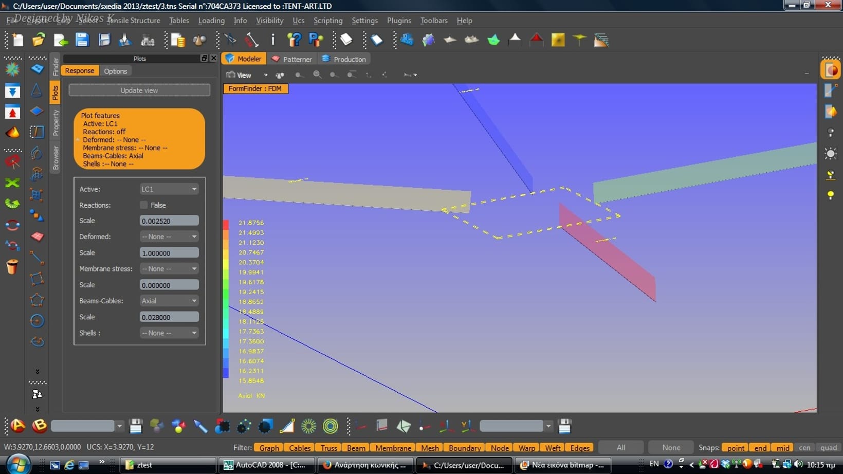 Проект за окачване на тента с форма на конус, с обща покрита площ от 215 кв.м.