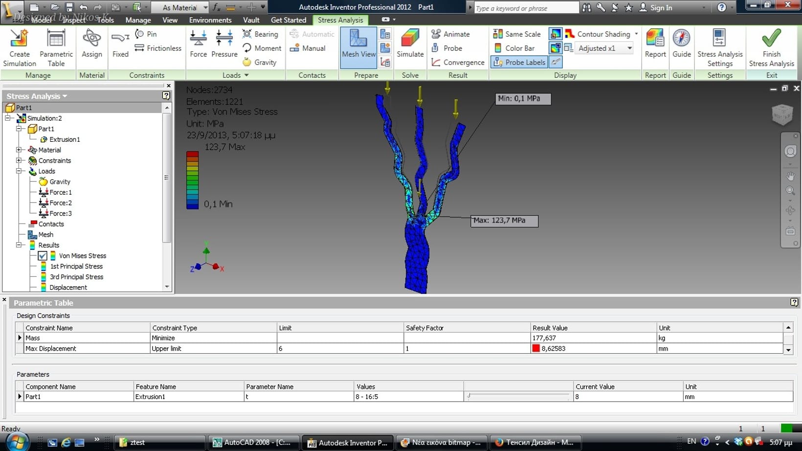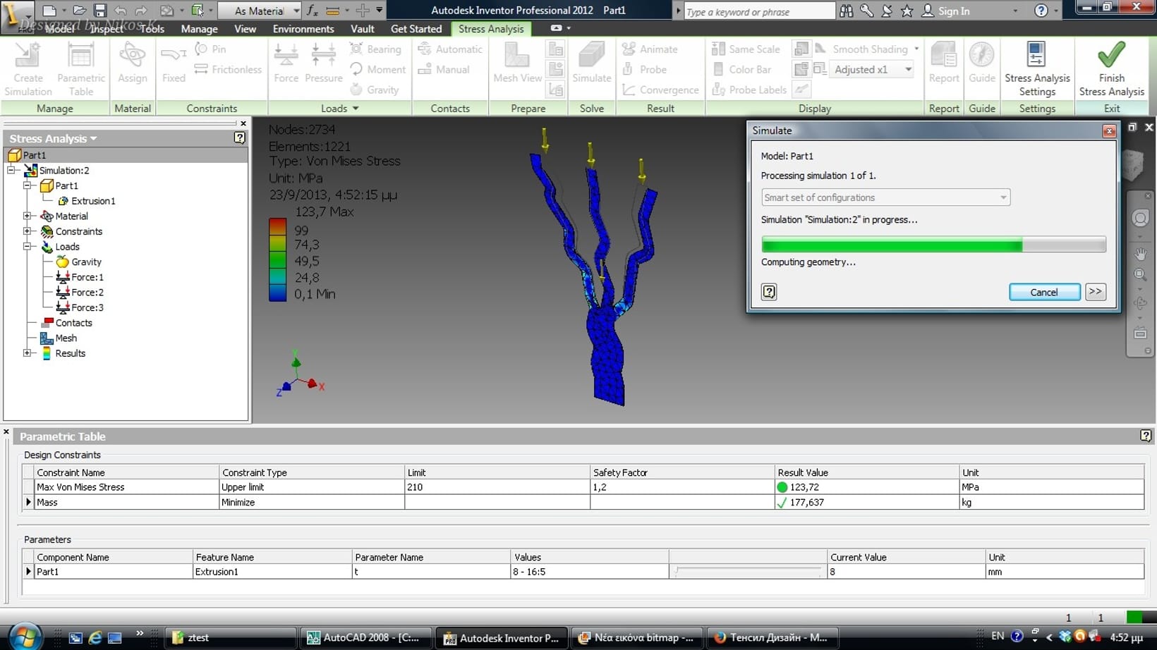 Анализът на крайните елементи (FEA) е приложен за структурна оптимизация на комплексен стълб от ламарина S235.