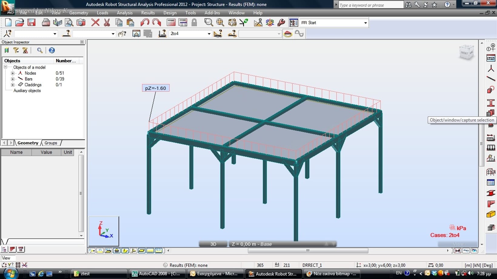 Един от акцентите в анализа е проектирането на дървени конструкции с покритие, подложени на натоварване от сняг. Особено внимание е отделено на хоризонталните греди с двоен профил, при които са изследвани деформации, устойчивост и оптимизация на сечението.